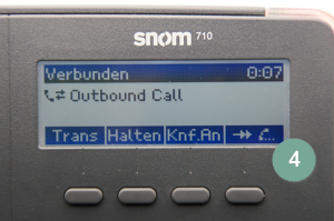 Bitte beachten Sie, dass diese Funktion nur zur Verfügung steht, wenn Sie in der Konfiguration des Telefons entsprechend unserer Online-Hilfe "Auto-Attended Transfer" auf "Ja" eingestellt haben.