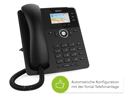 Es integriert sich spielend einfach in Ihre fonial Cloud-Telefonanlage. Geben Sie einfach die MAC-Adresse Ihres Gerätes in der Web-Oberfläche der Anlage ein und schon konfiguriert sich Ihr snom Telefon vollautomatisch. Wenn Sie Ihr snom-Telefon manuell konfigurieren möchten, finden Sie ausführliche Anleitungen in unserer Online-Hilfe.